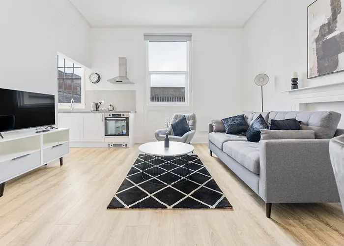 広々としたベッドルーム1室のStylish 2 Bedroom Apartment In Central チェルトナムは、John Lewis & Partners Cheltenhamから徒歩でわずか5分で、グロスターシャー空港から5キロメートルの場所にあります。